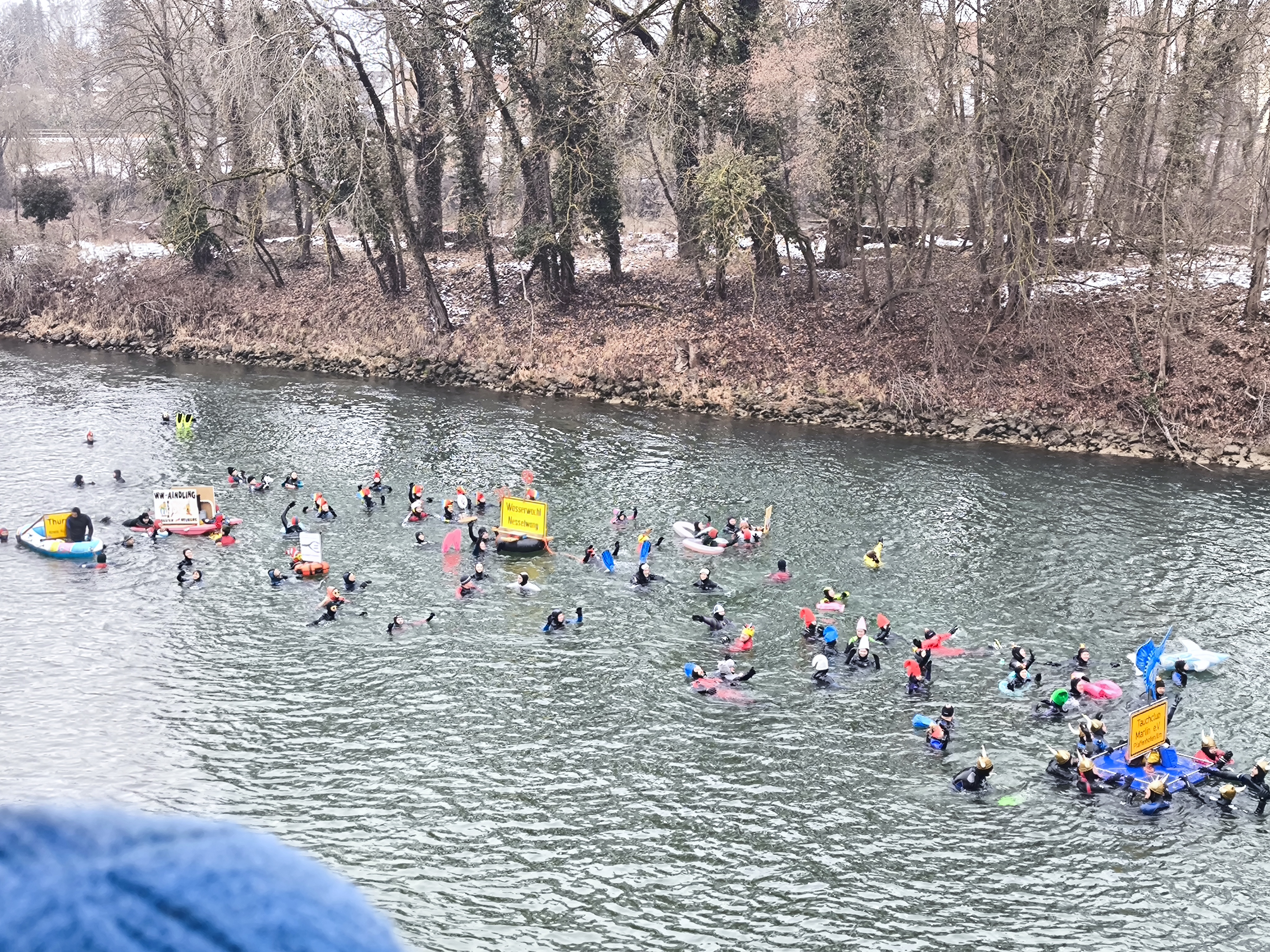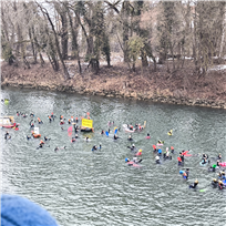 Die DLRG Pfungstadt nahm zum 41. Mal teil und reiste mit 9 Schwimmerinnen und Schwimmern an, die sich bei 3,5°C im Neoprenanzug in den Fluss wagten. Drei weitere Pfungstädter, darunter der 1. Vorsitzende Holger Heisel, blieben lieber bei 1°C Lufttemperatur an Land und schauten sich das bunte Spektakel mit der Zuschauermenge vom Ufer aus an.