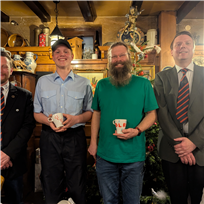 Im zweiten Teil der Ehrungen bedankte sich Dirk Kopp als Technischer Leiter für die geleisteten Arbeitsstunden 2025 bei den aktiven Mitgliedern. "Schon jetzt ist absehbar, dass wir die Marke von über 4000 ehrenamtlich geleisteten Arbeitsstunden in diesem Jahr knacken werden. Das ist ein toller Verdienst der gesamten Aktiven-Truppe und verdient großen Dank", so Dirk Kopp. Für die aktiven Helfer gab es auch 2025 erneut Gutscheine, die für DLRG-Material eingelöst werden können. Besonders hervorgehoben wurden die Ehrenamtlichen mit den meisten Stunden in den einzelnen Bereichen. "Das Goldene Seepferdchen, wie wir diesen Preis nennen, gab es dieses Jahr erneut in den Kategorien Schwimmausbildung, Wasserrettungsdienst und Jugendarbeit", so Kopp, der die Preise an Marcus Siesenop, Marlon Nies und Sven Emich vergab. Neben dem Dankeschön, erhielten die drei auch eine der Unikats-Tassen von der Kinder-Weihnachtsfeier, was allen eine sichtliche Freude bereitete.
