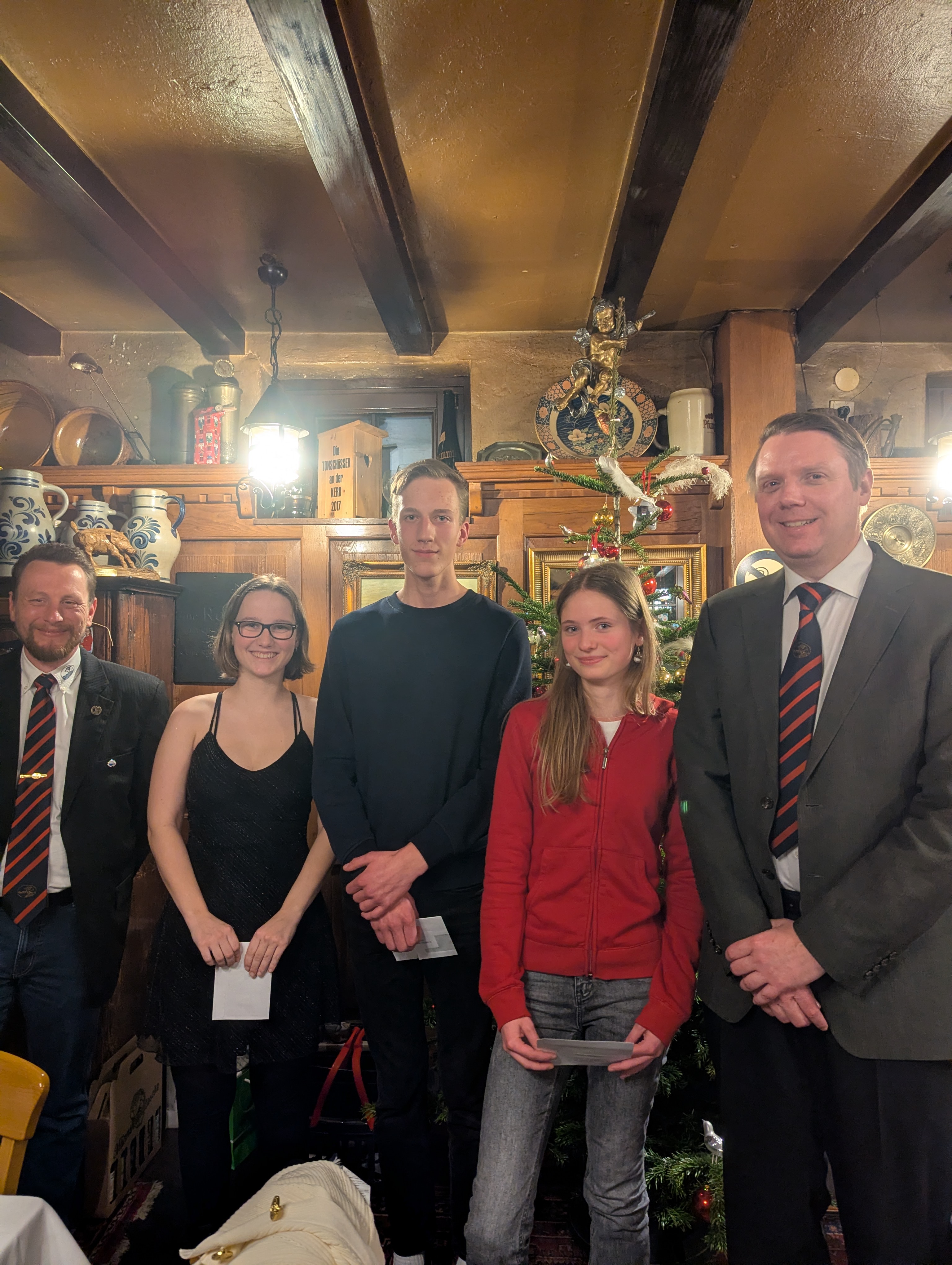 Nur wenige Tage später fand die Weihnachtsfeier der DLRG Ortsgruppe zusammen mit aktiven und langjährigen Mitgliedern statt. Diesmal hatten sich die Lebensretter dazu entschieden im Gasthaus zur Rose in Pfungstadt zu feiern. Nach vielen Jahren, in denen die Veranstaltung im DLRG-Vereinsheim stattfand, wollten die Lebensretter mal wieder mit einem anderen Akzent außerhalb der eigenen Räumlichkeiten feiern. "Wir sind ja schon lange Jahre über die Aktivitäten bei der Pfungstädter Kerb mit dem Gasthaus zur Rose freundschaftlich verbunden. Und gerade jetzt vor der anstehenden Renovierung, war es schön hier gemeinsam den Abend zu verbringen", freute sich Holger Heisel über den diesjährigen Austragungsort der Feier. Der Gast- und Thekenraum der Rose war festlich geschmückt und sehr gut mit DLRG-Mitgliedern aller Altersklassen gefüllt. Ein leckeres Essen durfte natürlich nicht fehlen, bevor die beiden Vorsitzenden Holger Heisel und Jan Emich die langjährigen Mitglieder ehrten.