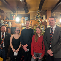 Im zweiten Teil der Ehrungen bedankte sich Dirk Kopp als Technischer Leiter für die geleisteten Arbeitsstunden 2025 bei den aktiven Mitgliedern. "Schon jetzt ist absehbar, dass wir die Marke von über 4000 ehrenamtlich geleisteten Arbeitsstunden in diesem Jahr knacken werden. Das ist ein toller Verdienst der gesamten Aktiven-Truppe und verdient großen Dank", so Dirk Kopp. Für die aktiven Helfer gab es auch 2025 erneut Gutscheine, die für DLRG-Material eingelöst werden können. Besonders hervorgehoben wurden die Ehrenamtlichen mit den meisten Stunden in den einzelnen Bereichen. "Das Goldene Seepferdchen, wie wir diesen Preis nennen, gab es dieses Jahr erneut in den Kategorien Schwimmausbildung, Wasserrettungsdienst und Jugendarbeit", so Kopp, der die Preise an Marcus Siesenop, Marlon Nies und Sven Emich vergab. Neben dem Dankeschön, erhielten die drei auch eine der Unikats-Tassen von der Kinder-Weihnachtsfeier, was allen eine sichtliche Freude bereitete.